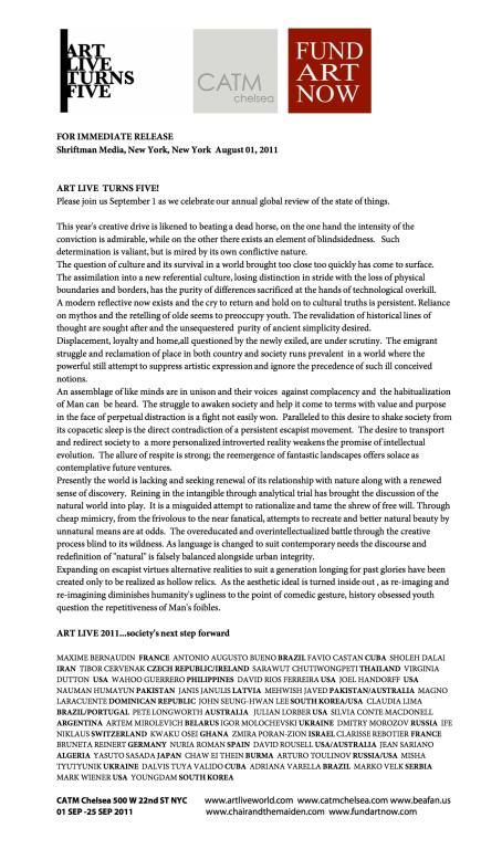 ART LIVE is an annual celebration whose sole intention is to bring to public attention current issues presently being addressed by the Arts community worldwide.